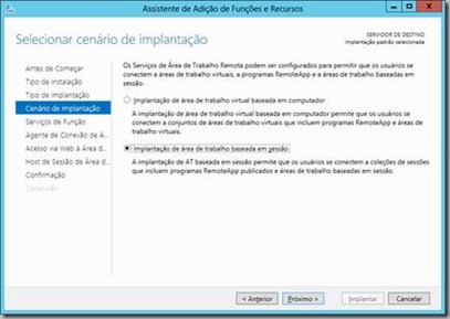 7) Selecione Implantação de área de trabalho baseada em sessão > Próximo