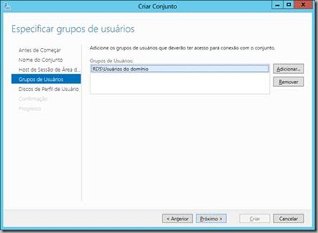 4) Na Guia Grupo de Usuários adicione os grupo que deseja dar acesso ao conjunto.