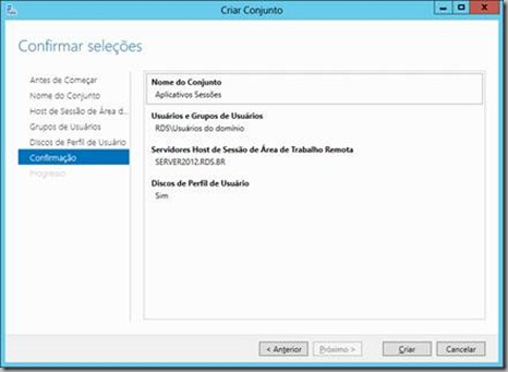 3) Na Guia Geral podemos definir o nome do conjunto e a descrição. Observe a opção de mostrar este conjunto no Acesso via Web da Área de Trabalho Remota.