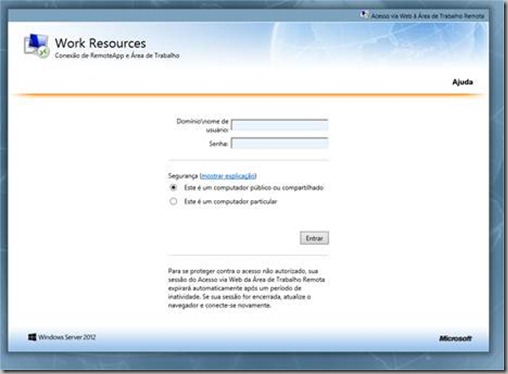 Exemplo: https://server12rds/rdweb > Informe as credenciais