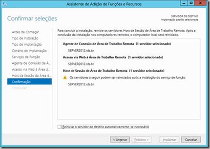 12) Resumo da instalação > marque Reiniciar o servidor de destino automaticamente se necessário > clique em Implantar
