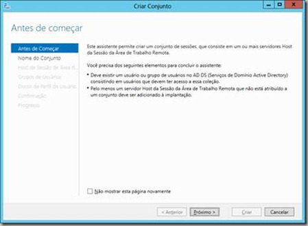 1) Acesse o Gerenciador do Servidor > Selecione Serviços da Área de Trabalho Remota > clique com o botão direito do mouse sobre Host de Sessão > selecione Criar Conjunto de Sessões